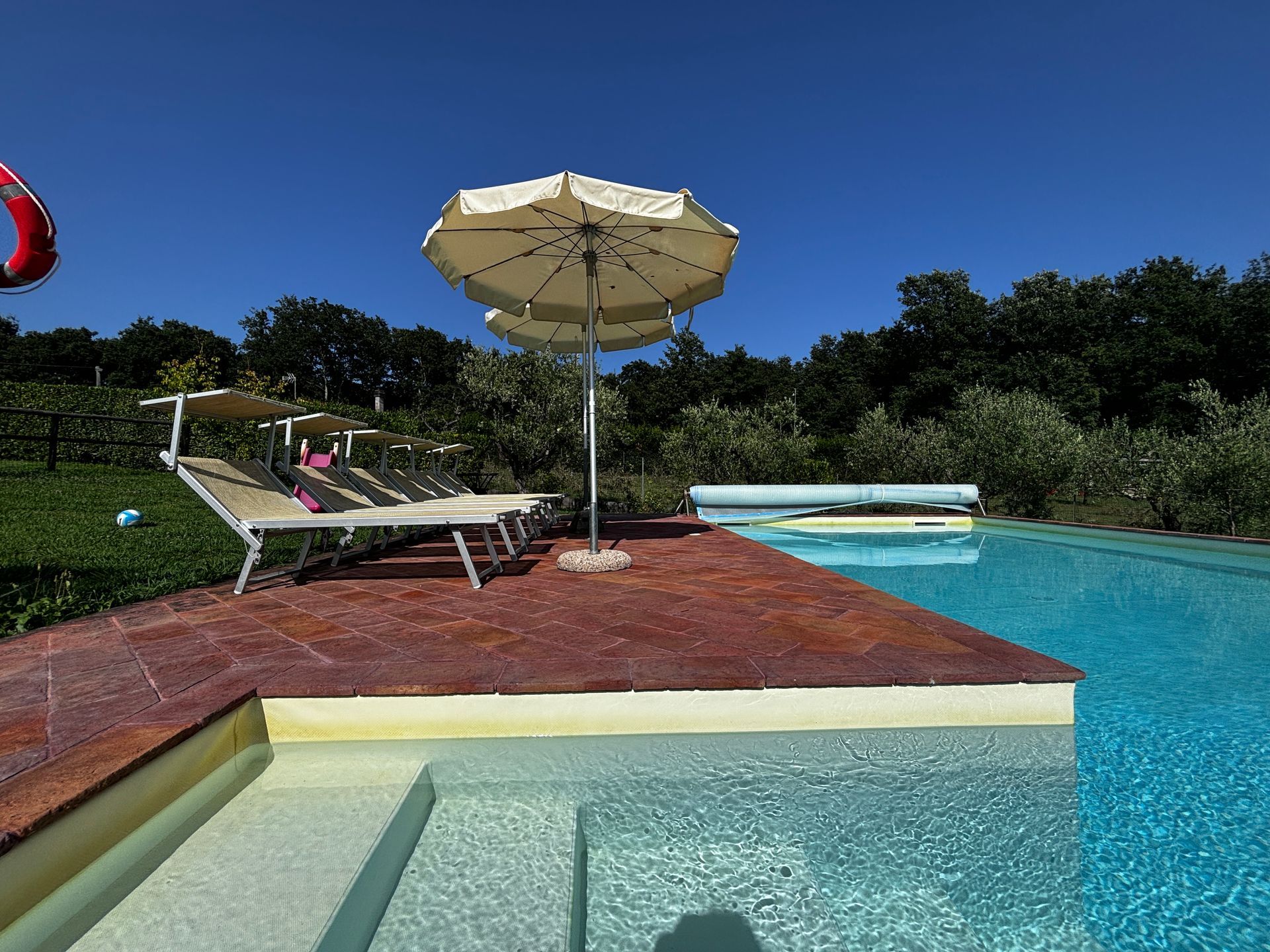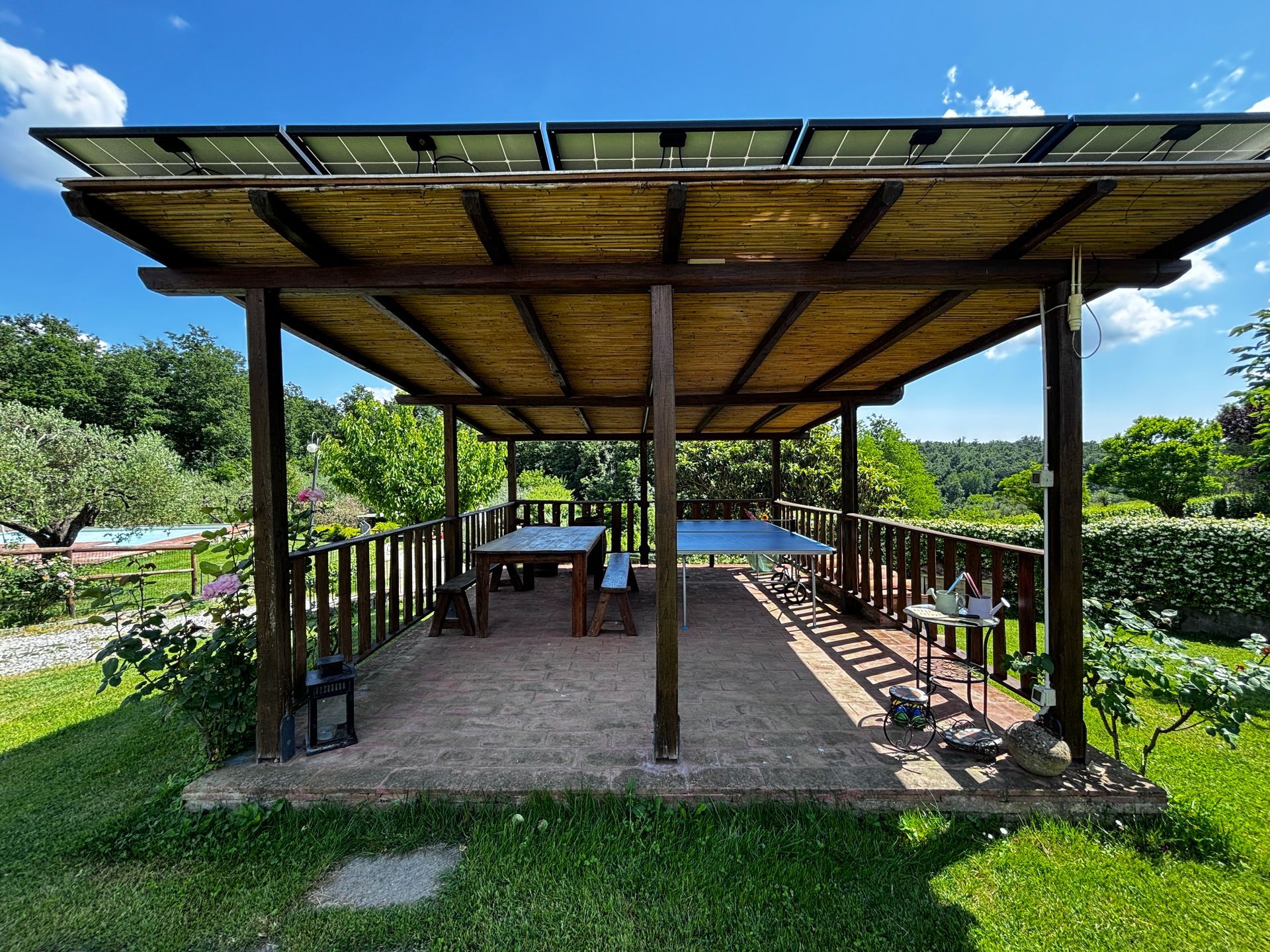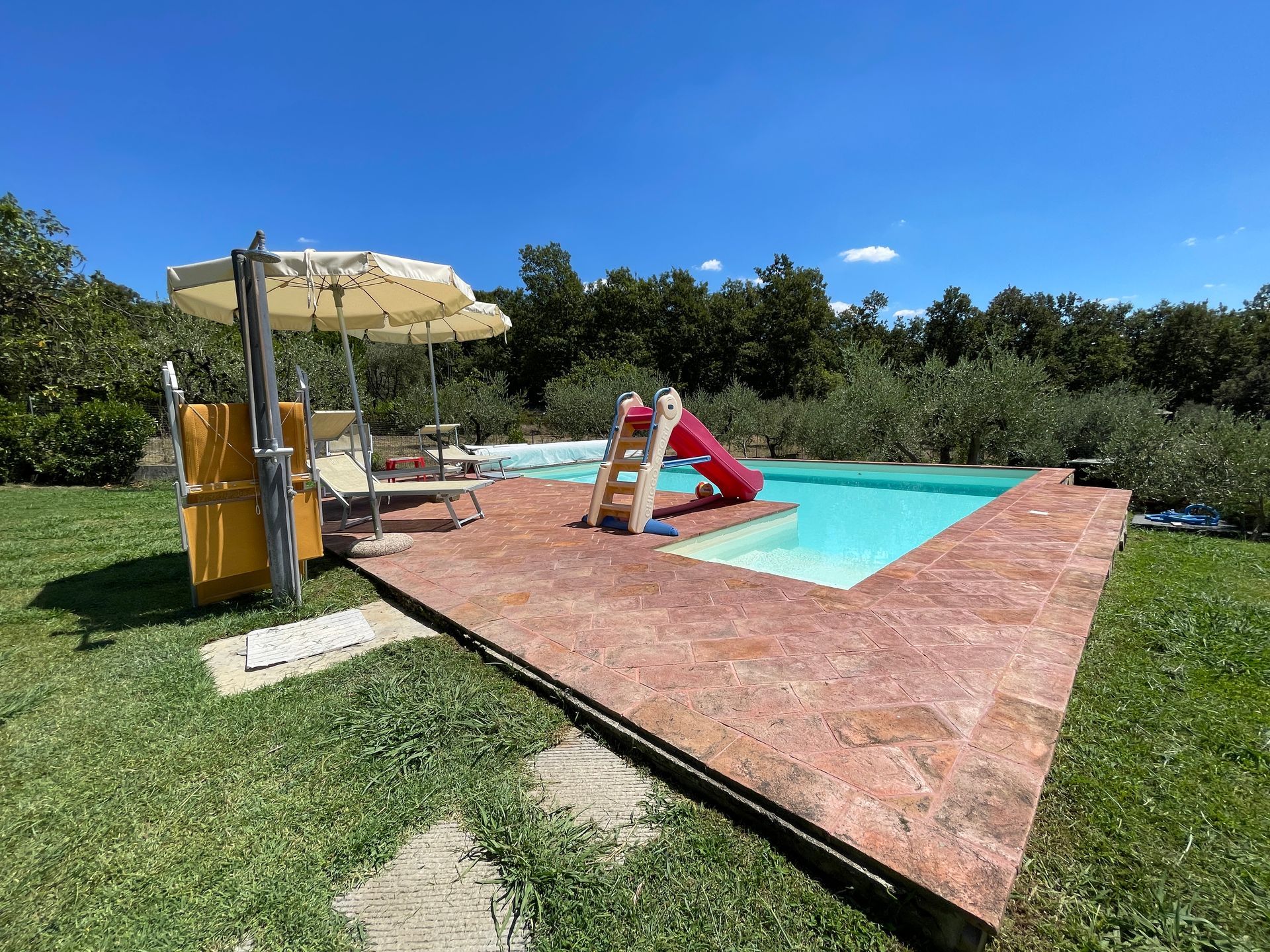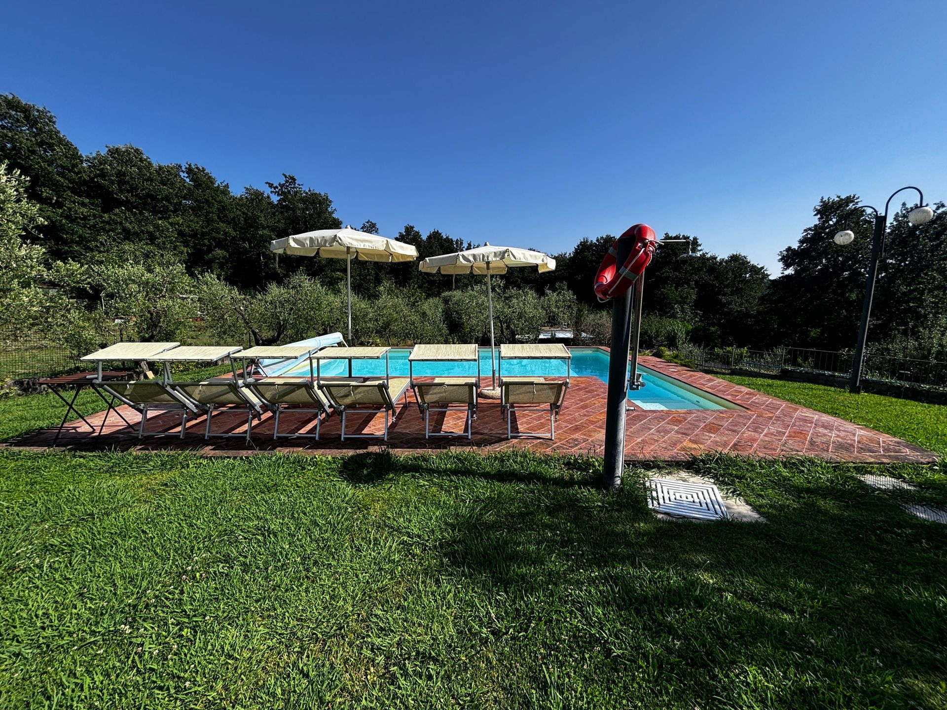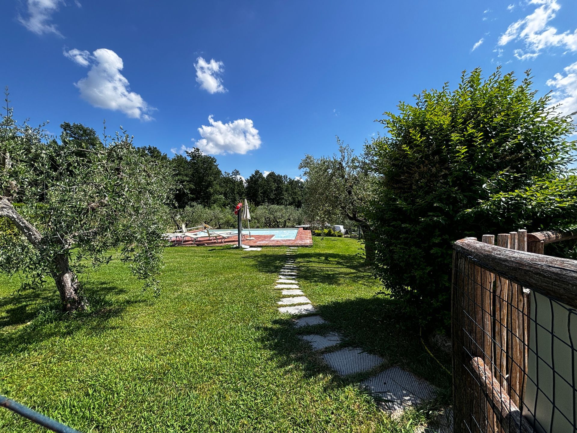 Il Poggio Accommodation is a family-run property of about 6.6 acres with gardens, fruit trees like cherries, pomegranate trees, apricots, and some olive trees, strawberries, lots of flowers and of course some forest to get some shadow and fresh areas.