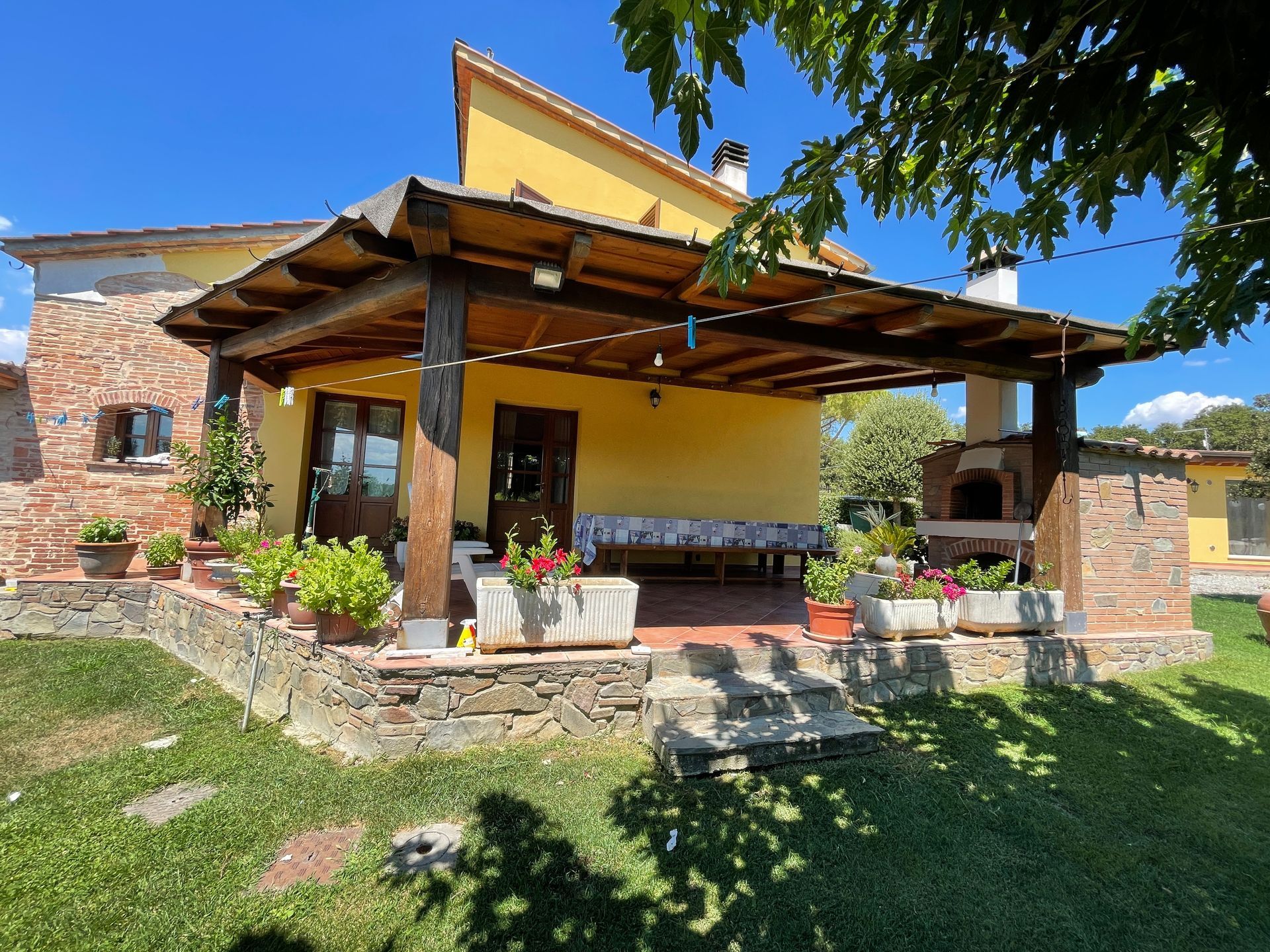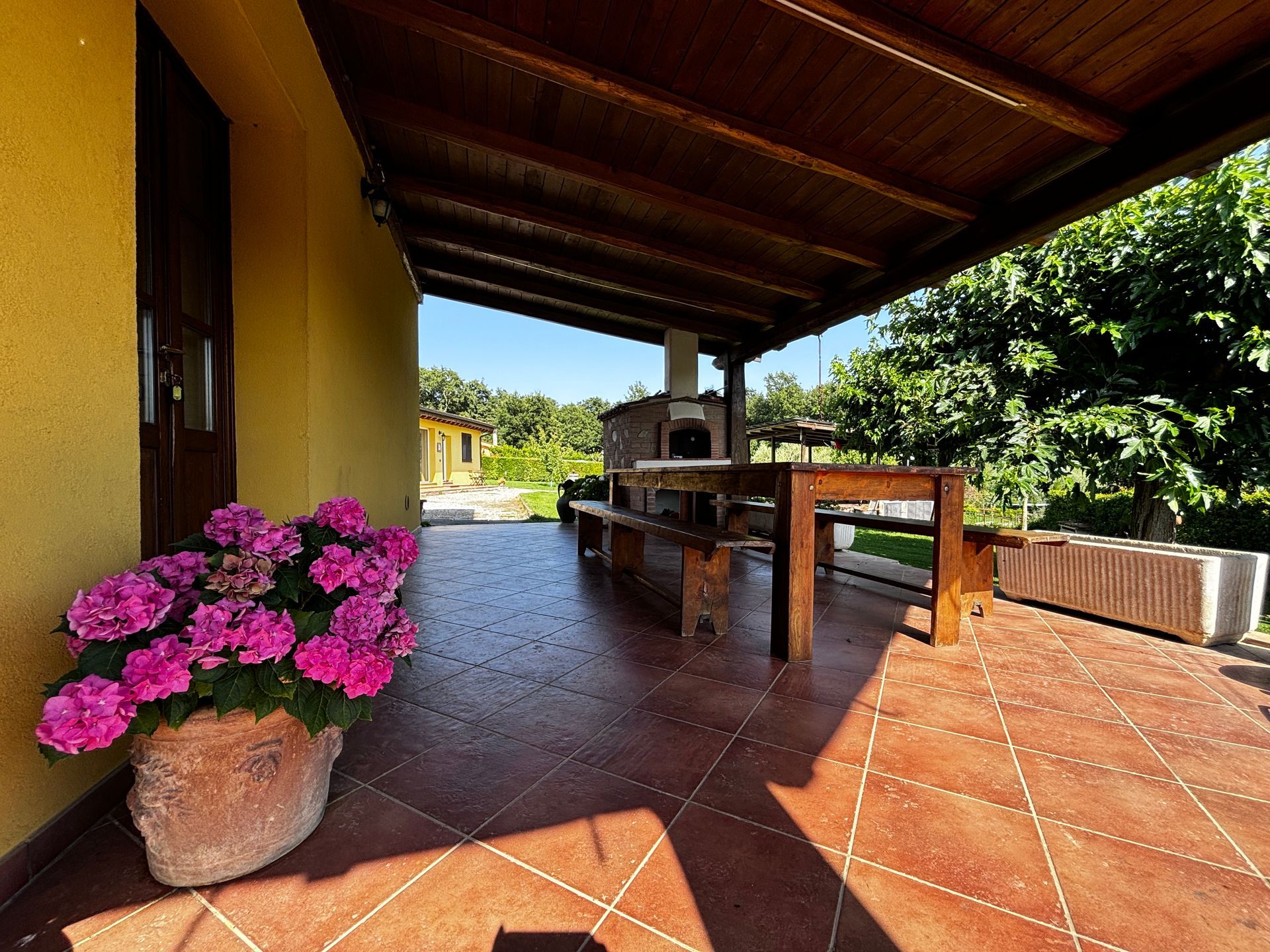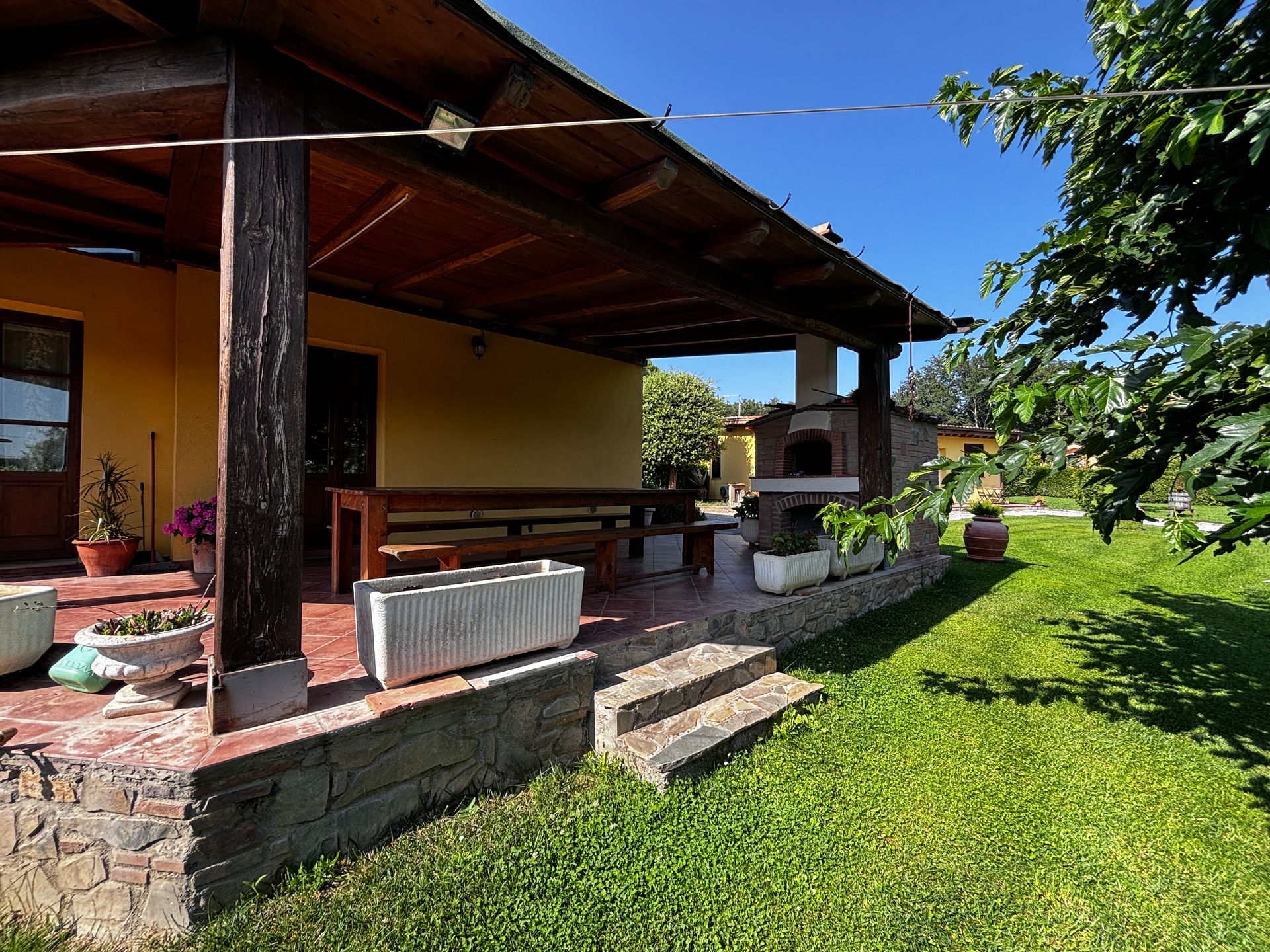 - The first biggest one is LA CASTELLINA, the property where there are the cottage "Il Giardino", 2 bedrooms and 2 bathrooms, kitchen and dining area with access to the garden and the MAIN VILLA with 3 bedrooms, 2 bathrooms, living area with fireplace, big kitchen and private veranda with wood oven for pizzas, both sharing the 2500 sqm of garden with a stunning swimming pool, a porch to have open air lunch and the barbecue.