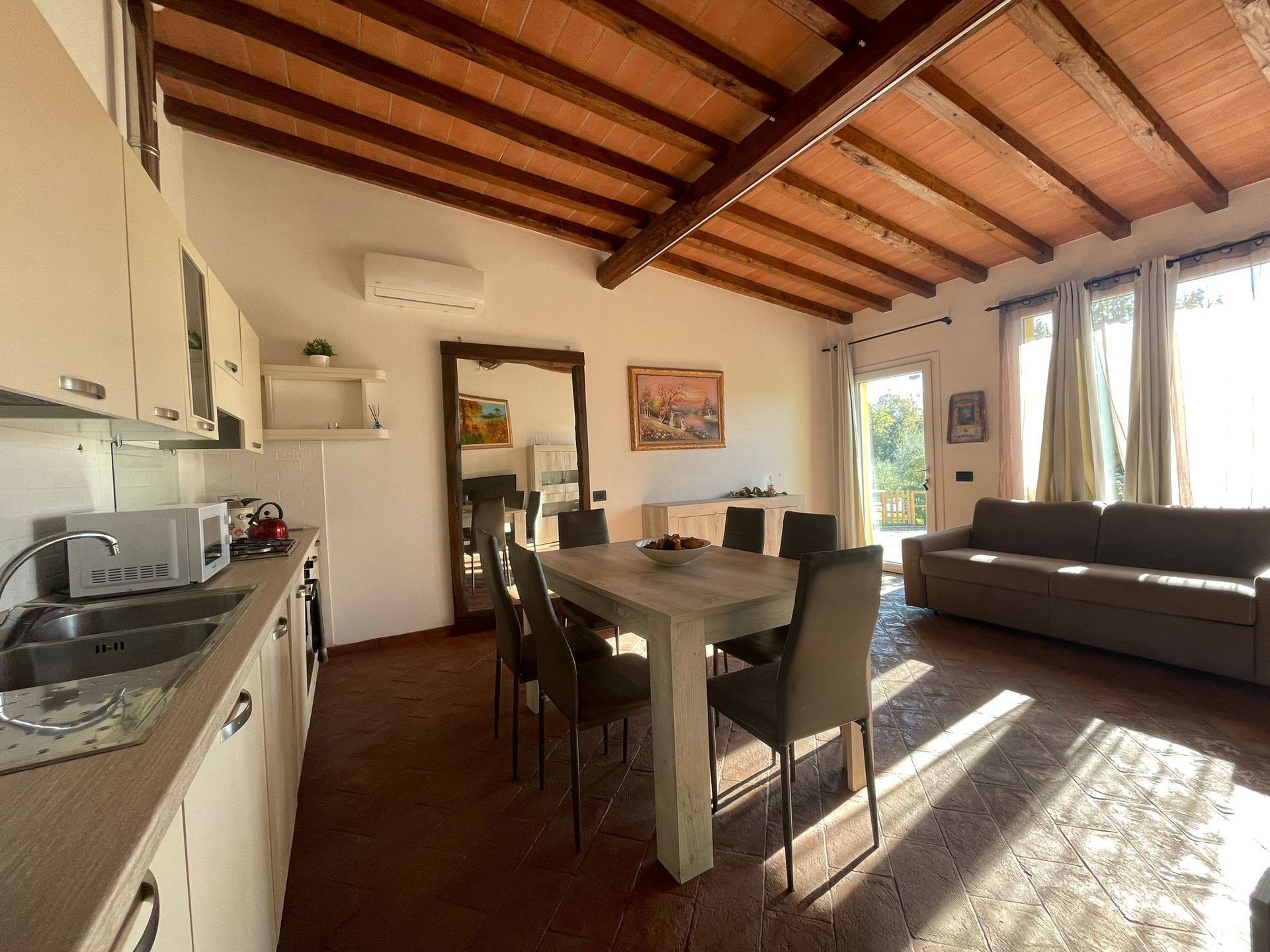 The Cottage "Il Giardino" is a pretty detached dependance with an open-space with fully equipped kitchen with stoves, micro, coffee maker and refrigerator, living room with a sofa-bed for two people, 2 double bedrooms with 2 bathrooms, both with shower. The entire house has typical tuscan features like cotto tiled floors and beams ceilings.